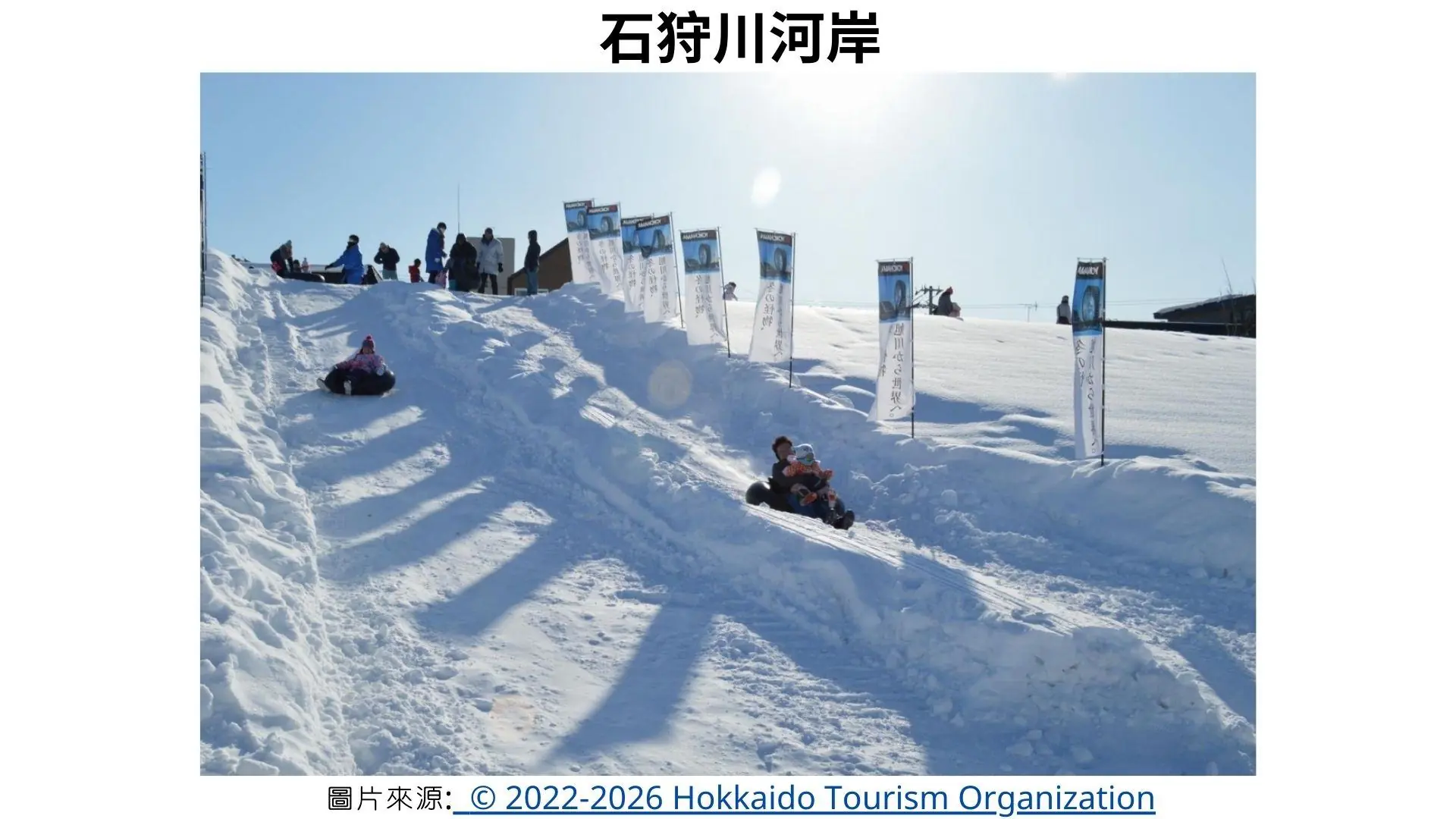 如果想感受更純粹的雪國風景,可以走到石狩川河岸。冬季河面部分結冰,遠方橋樑與白樺樹被雪覆蓋,畫面極簡卻很有北海道味道。黃昏時分特別漂亮,天空會染成淡藍與粉紫色,是很多攝影迷私藏的時段。