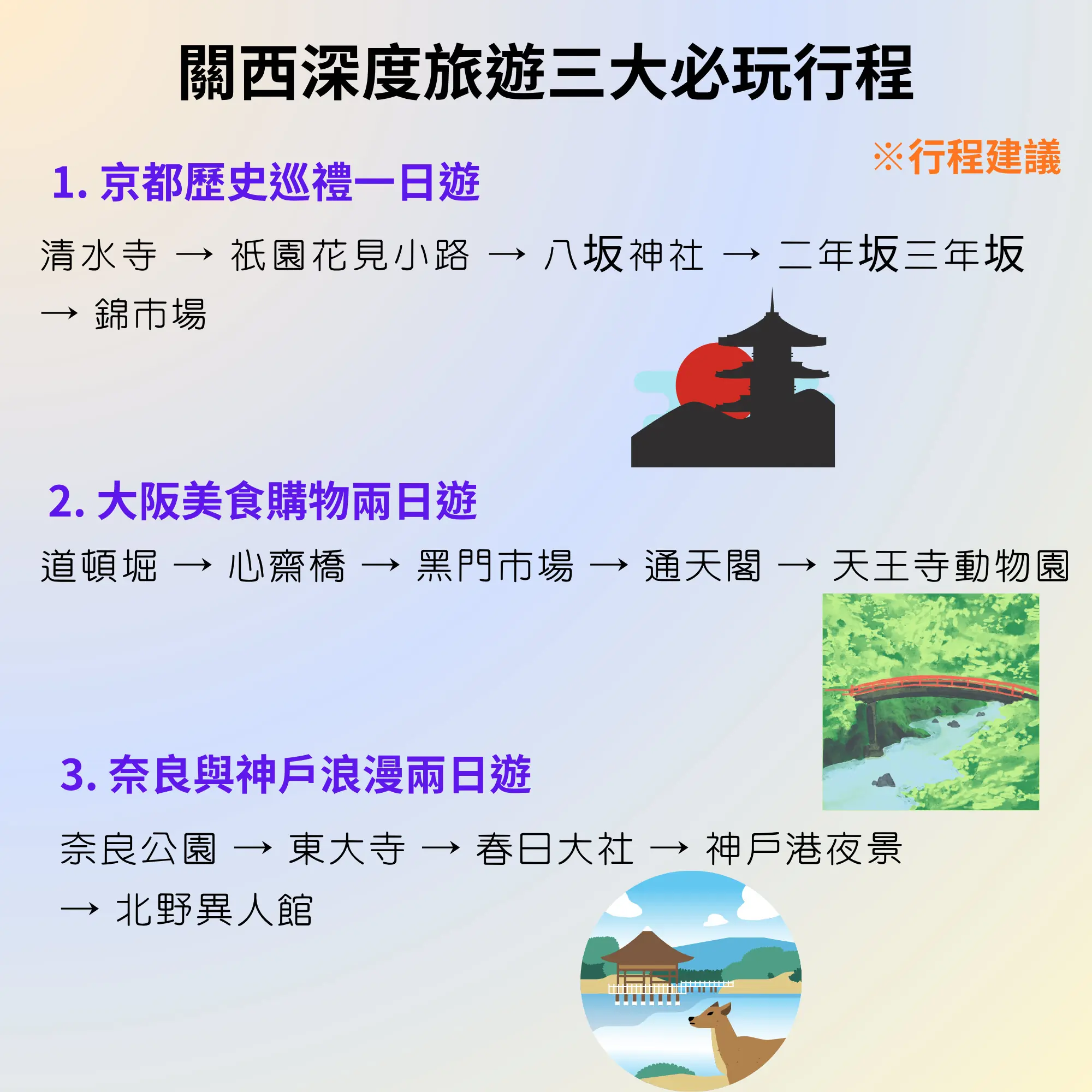 【關西旅遊】最具代表性的深度玩法,不論你選擇跟團還是自由行,都能依時間與預算靈活安排,享受最道地的日本風景與美食。