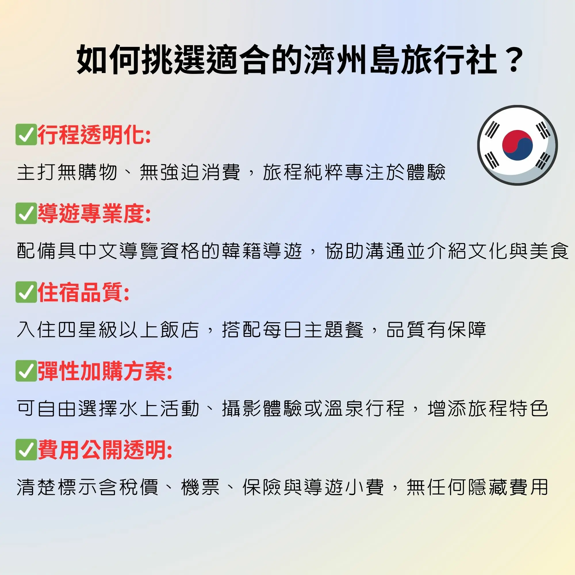 選擇【濟州島旅行團】時,最重要的就是旅行社的口碑與服務內容。台灣目前多家旅行社皆有推出「無購物純玩」行程,但細節差異很大。