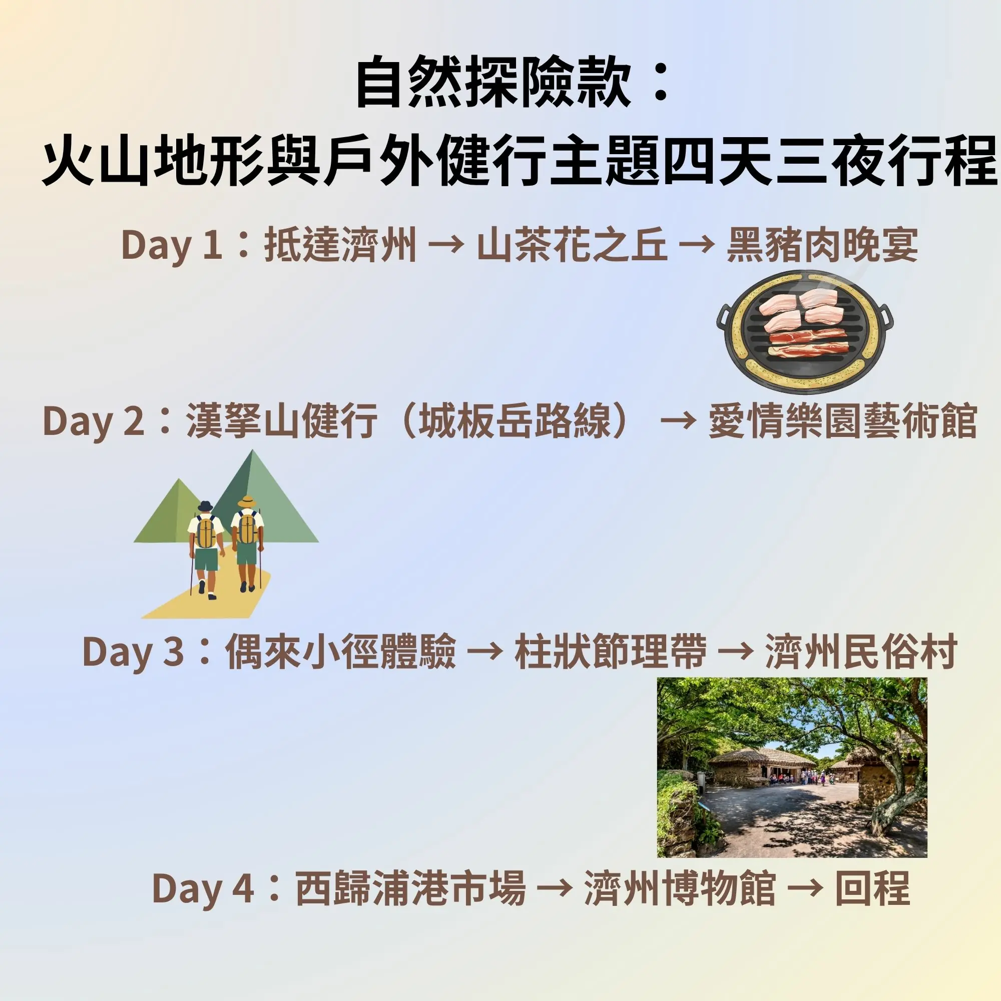自然探險款:濟州火山地形與戶外健行主題四天三夜行程