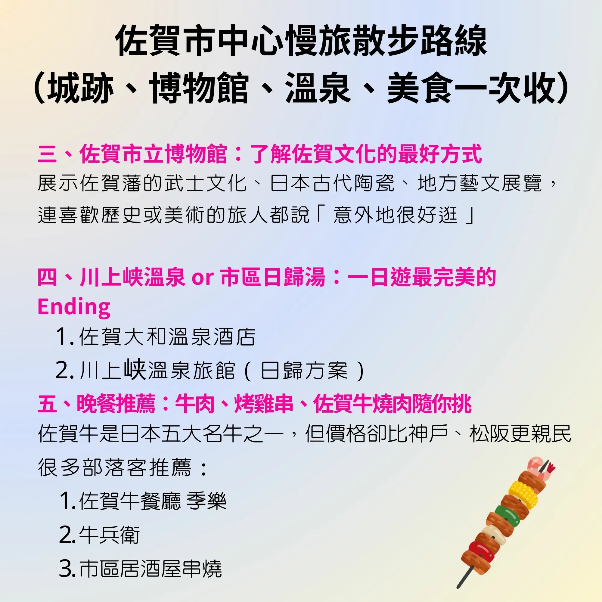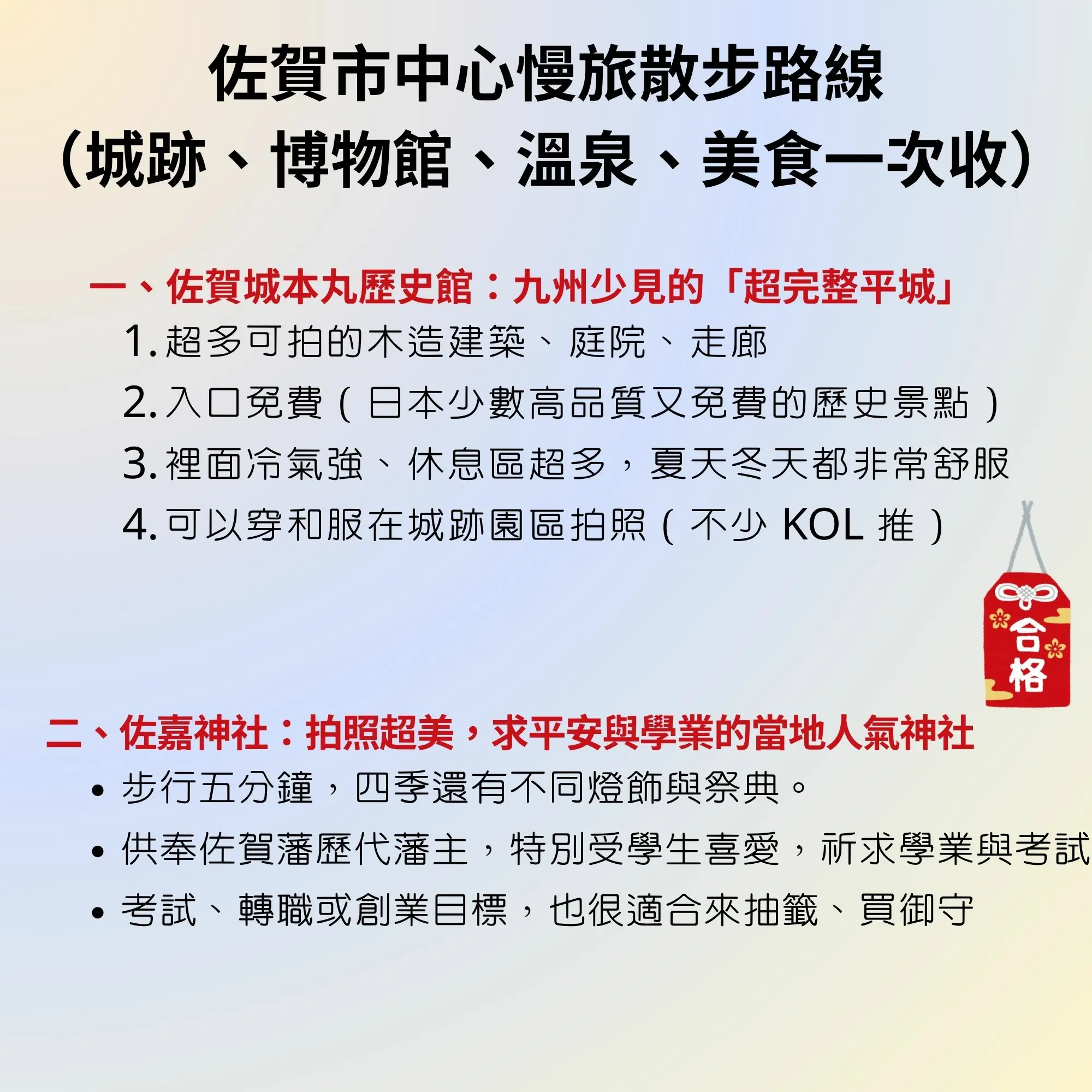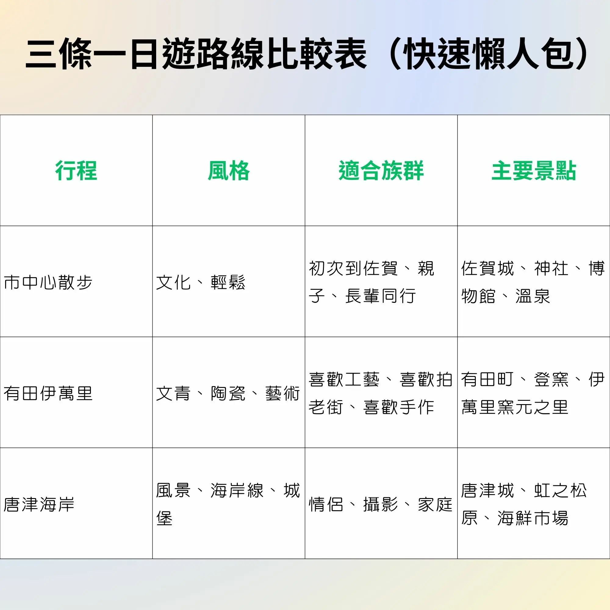 - 非常適合第一次接觸佐賀旅遊的旅人