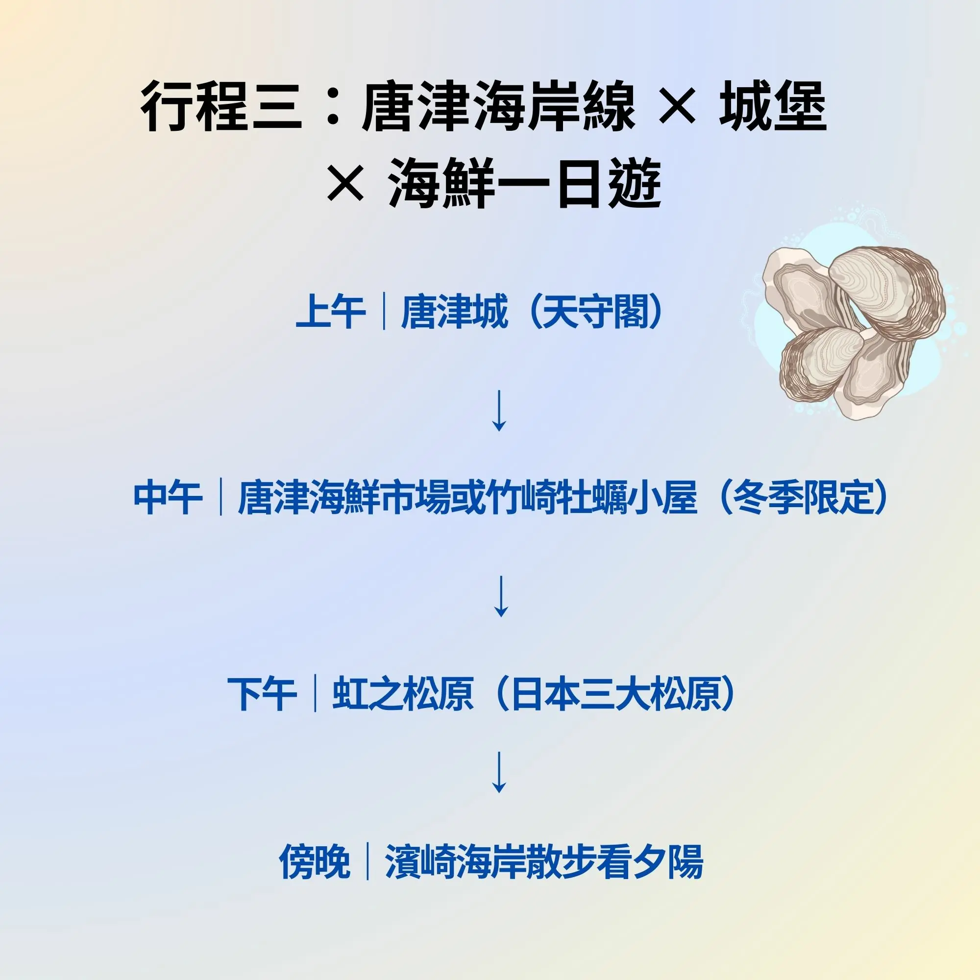 行程三:唐津海岸線 × 城堡 × 海鮮一日遊