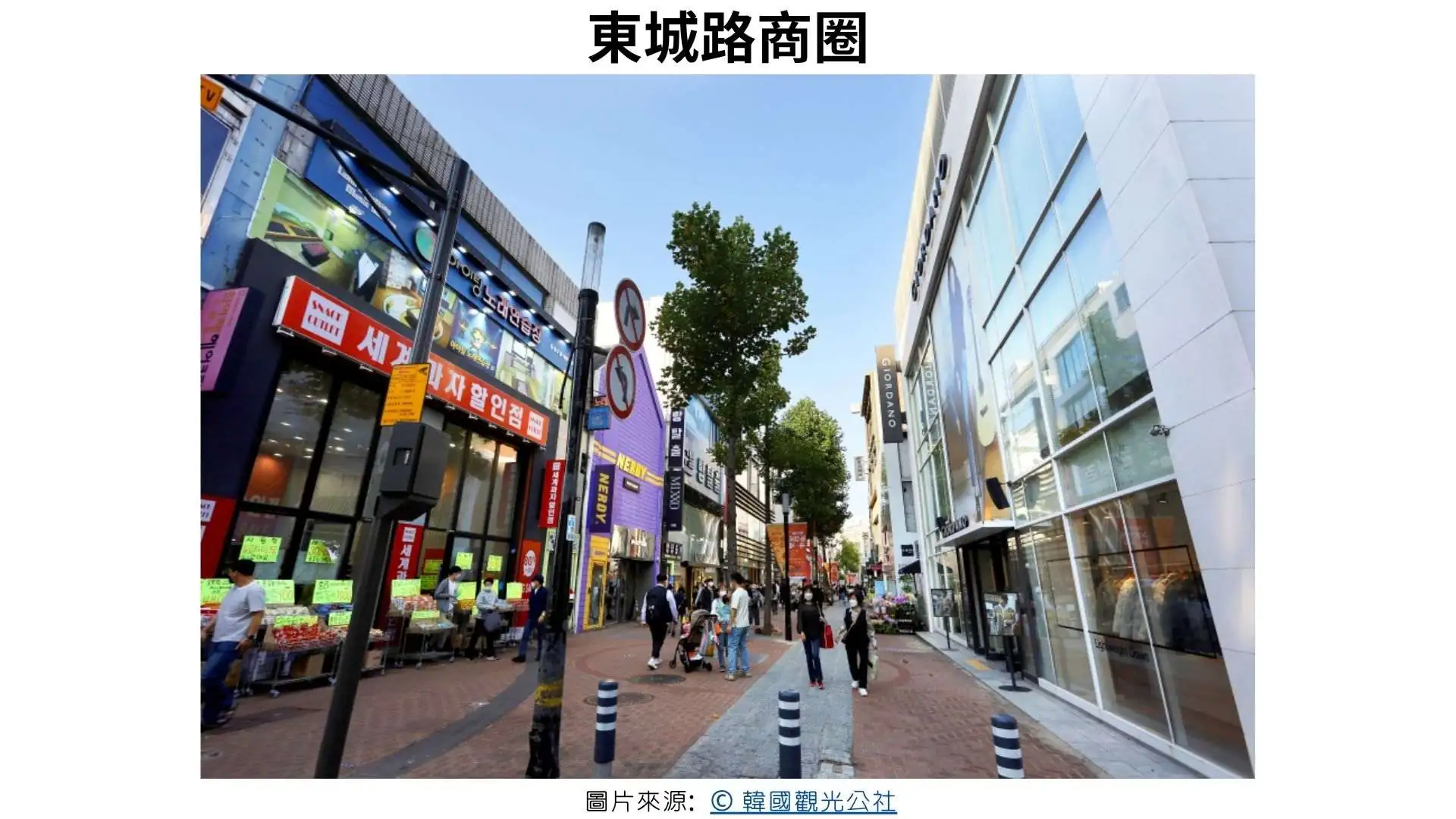 東城路可以說是大邱最熱鬧的地方,類似首爾的明洞。整條街充滿購物商場、服飾店、咖啡廳與韓國美妝店,是年輕人聚集的地方。